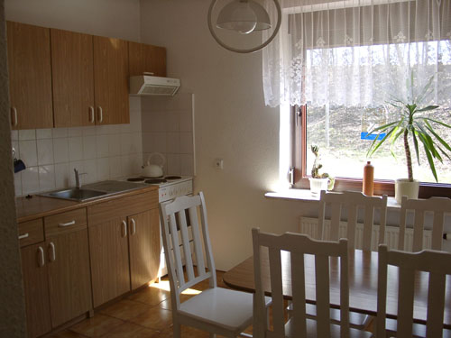 Budynek posiada 6 apartamentów, 3 duże (każdy 60 m2) i 3 małe (ok.45 m2). W dużym apartamencie są: 2 sypialnie 2-osobowe, pokój dzienny z telewizją satelitarną, kuchnia całkowicie wyposażona ze zmywarką, łazienka z prysznicem.