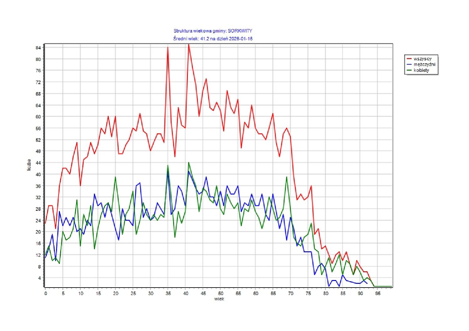 Liczba mieszkańców w Gminie Sorkwity stan na dzień 01.01.2026 r. wynosi 4228 osób.