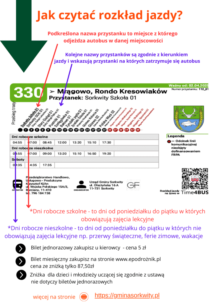 Grafika wyjaśniająca jak czytać rozkład jazdy.
